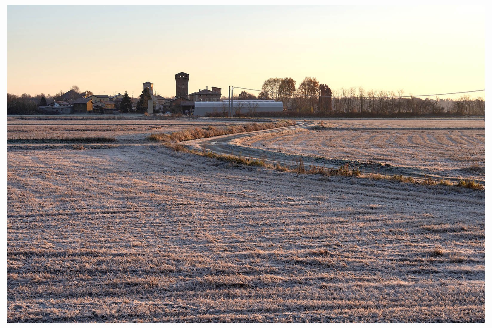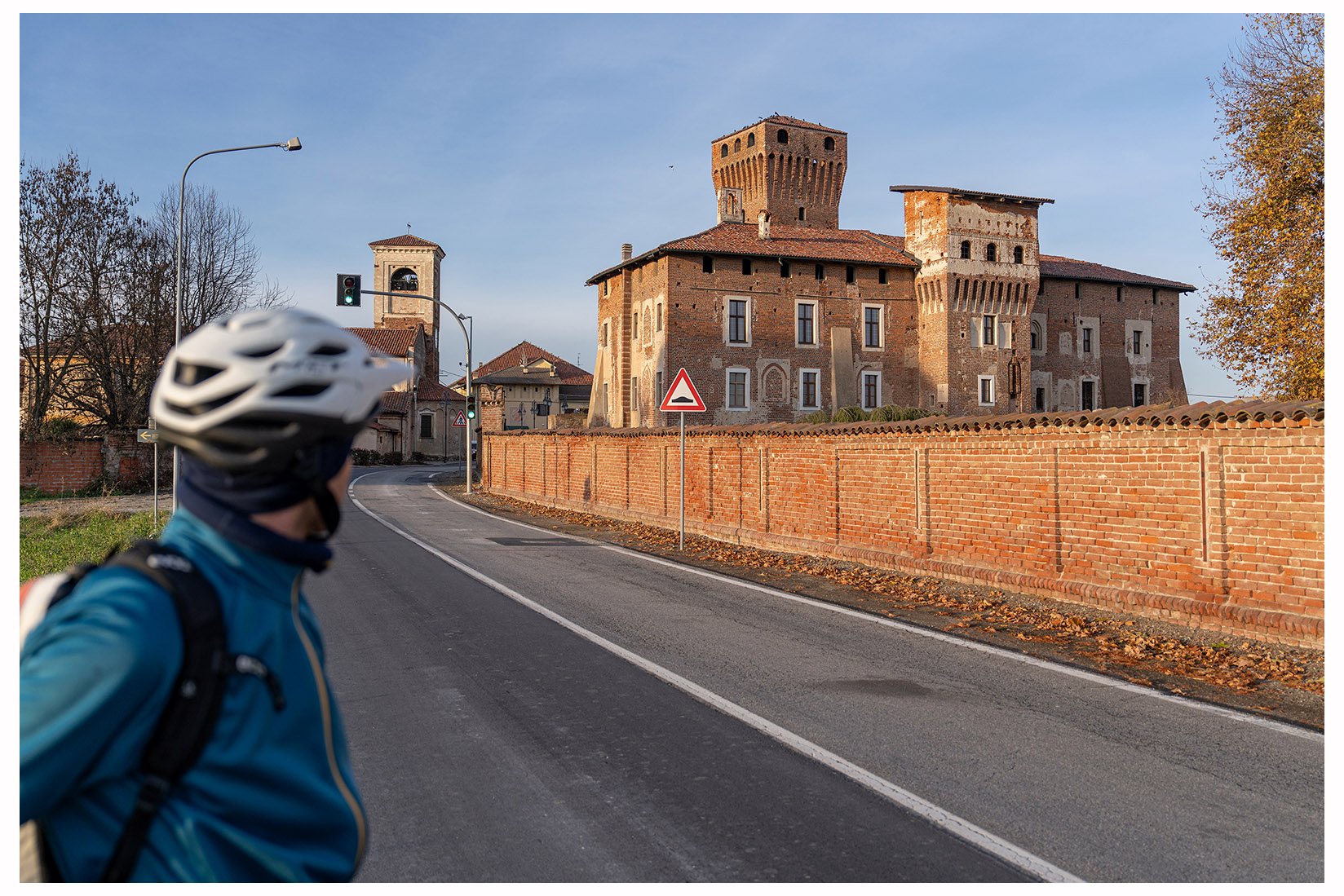 1 Sullo sfondo il castello di Balocco, punto di partenza di questo fresco giretto in bici tra la bassa vercellese e quella biellese, tra le risaie e le baragge, area "semiselvaggia" nel pieno della pianura che somiglia un pò alla savana africana. A marzo ho fatto un giretto in cui sono passato in un'altra zona delle baragge tra i fiumi Agogna e Sesia, clicca QUI Temperatura alla partenza -4