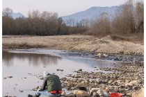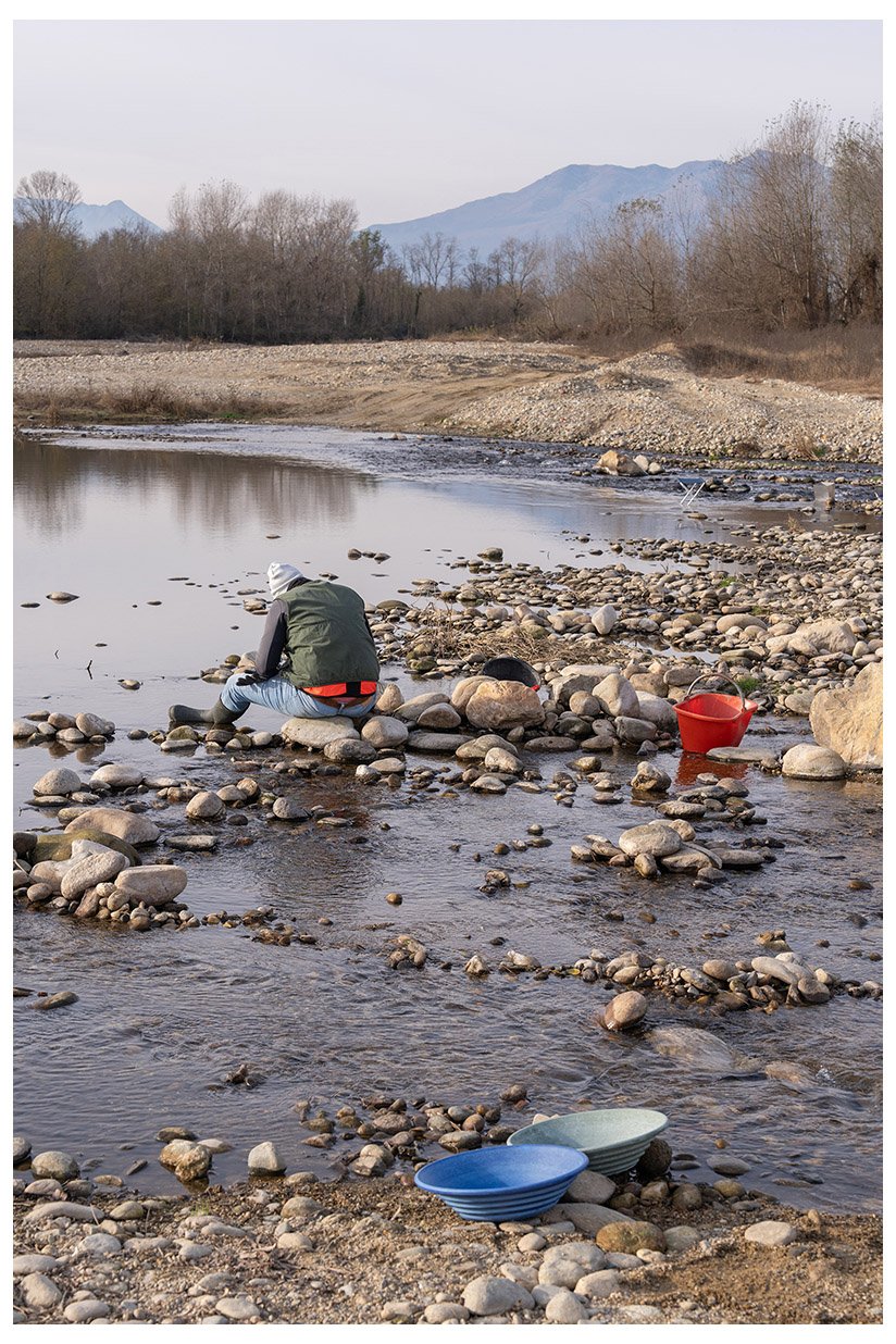 22 il torrente Cervo, questo guado non era fattibile, siamo dovuti tornare indietro e fare una strada alternativa. In primo piano un cercatore d'oro, ne abbiamo visti diversi al lavoro!
