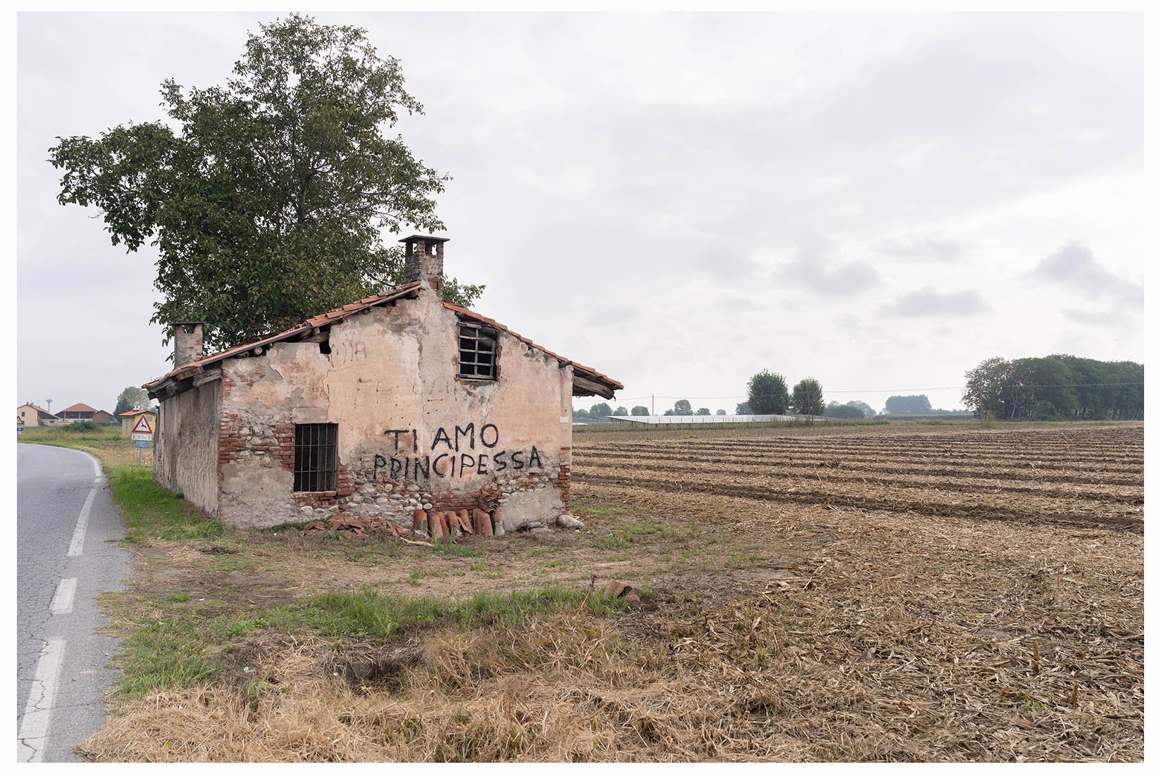 ![]() 4 Per risparmiare un pò di strada in macchina, siamo partiti appena fuori dall'autostrada Torino-Savona, abbiamo parcheggiato a Marene e abbiamo puntato verso Dronero, porta della val Maira, attraverso le campagne cuneesi, il cielo grigio e la luce piatta non rendono molto "allegro" il percorso |