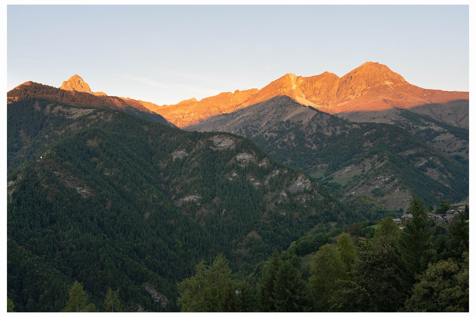 ![]() 26 alle 7e30 del mattino dalla finestra della camerata, oggi niente nuvole! In alto a sinistra spunta appena il monte Chersogno (3026m), salito il 15 agosto del 2011, clicca QUI , a destra invece il Pelvo d'Elva (3064m) |