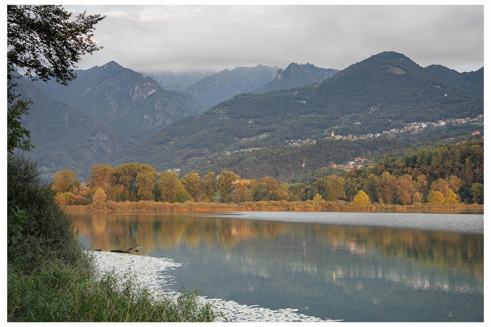 2 l'incontro è fissato per le 16 alla sede della riserva naturale, in riva al lago, dopo una interessante spiegazione della guida si parte a piedi verso la zona del Brione, a ovest del lago, tra boschi e canneti In questa foto il lago di Piano con sullo sfondo la Grigna settentrionale