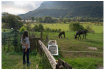 3 una passeggiata di 20, 25 minuti e ci fermiamo su dei terrazzamenti ricchi di vegetazione che dominano la grandissima piana agricola a ovest del lago, zona vietata se non si è accompagnati da una guida della riserva, stiamo una decina di minuti in attesa e poi verso le 17e30 salta fuori una femmina, poi un'altra e infine un bel branco.
