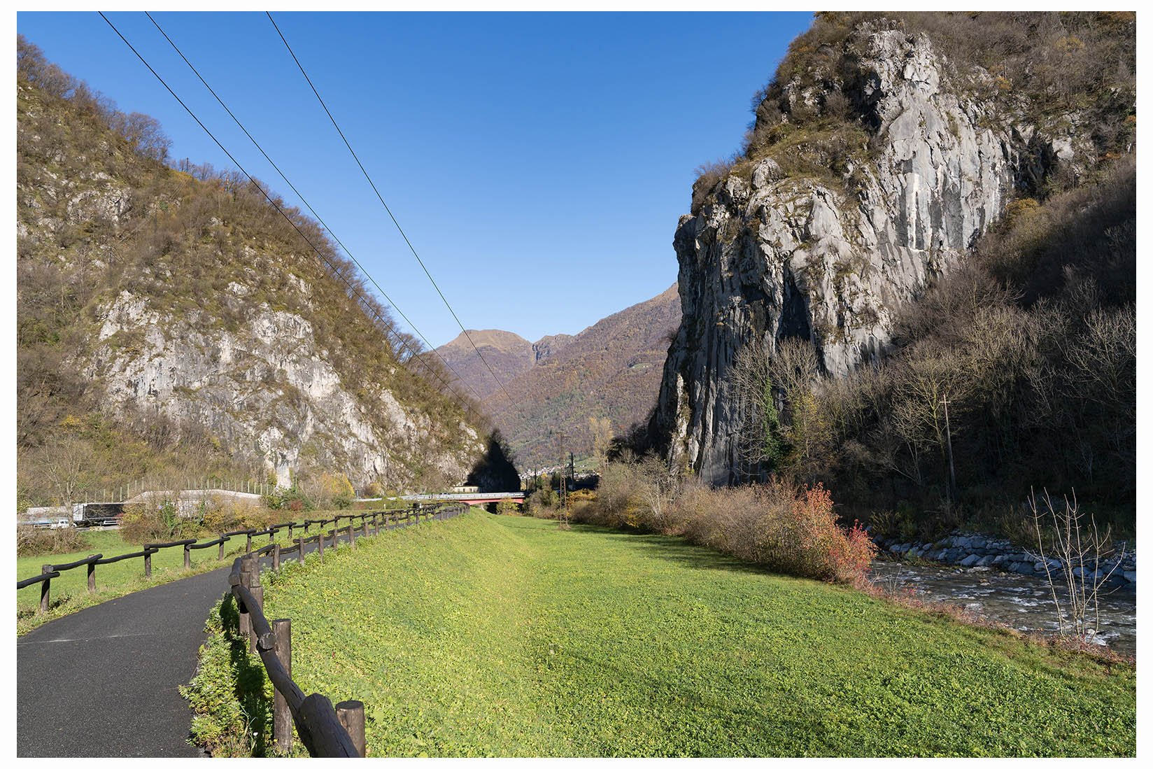 4 la strettoia nella valle tra la Rocca di Baiedo a sinistra e lo Zucco Angelone a destra, entrambe grandi falesie per gli arrampicatori