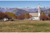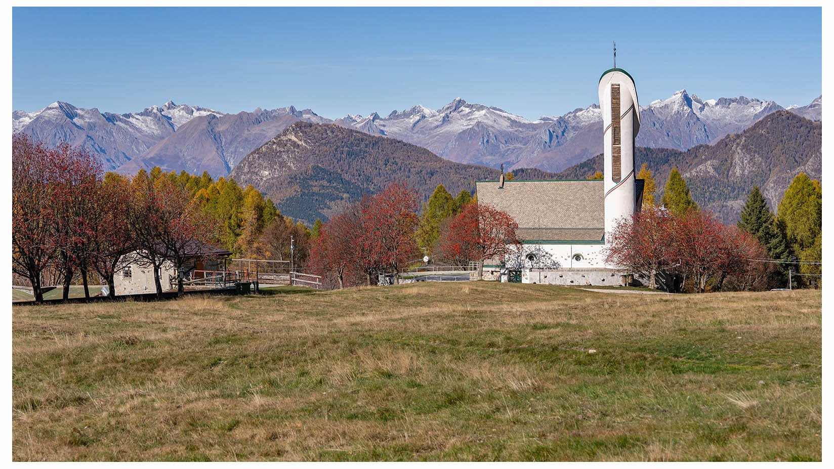 5 il campanile di Cortenova e in alto il pizzo della Pieve (2257m)