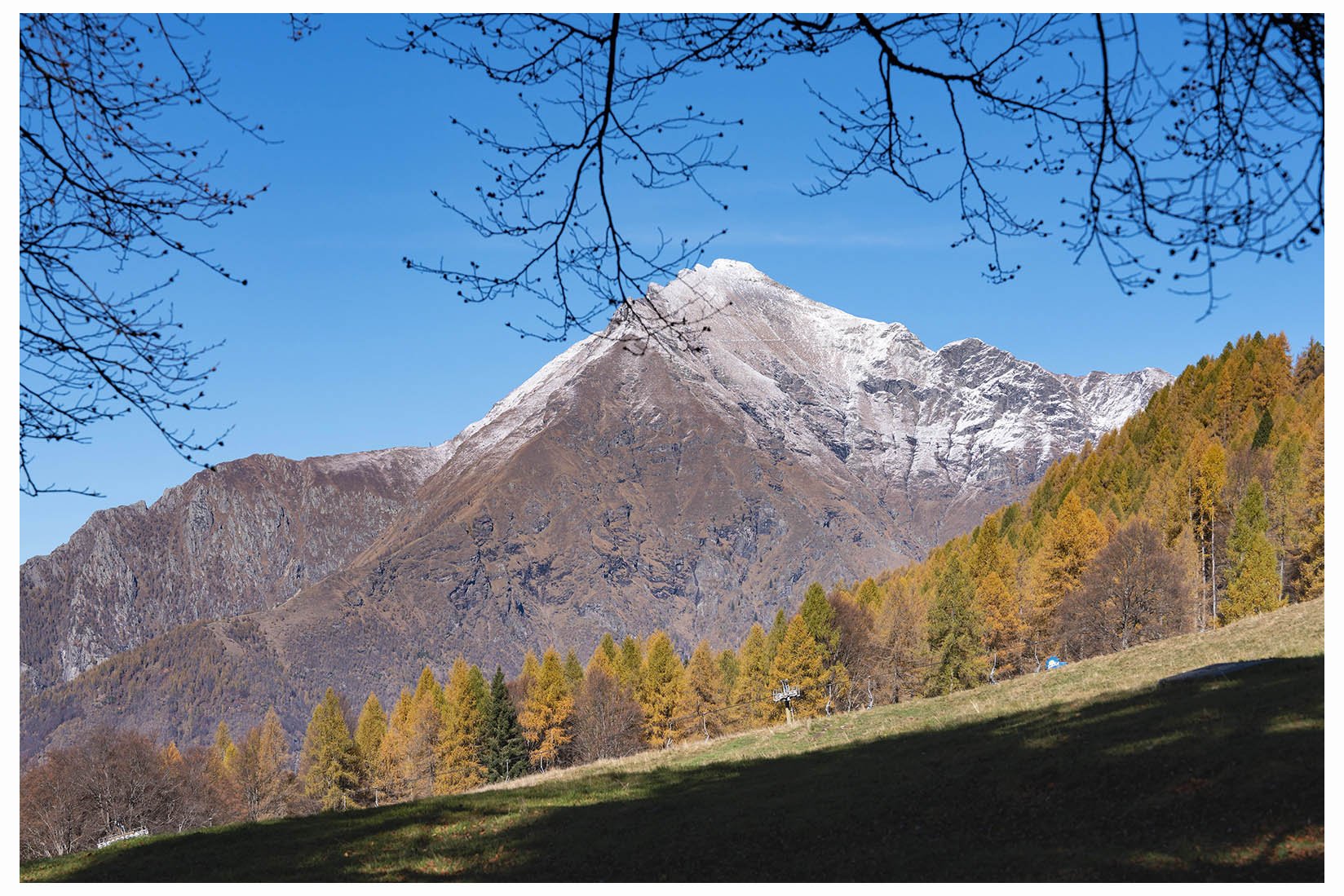 3 bei colori autunnali in valle, il Grignone con una spruzzatina di zucchero a velo (deve aver nevicato ieri mentre da noi pioveva)