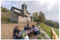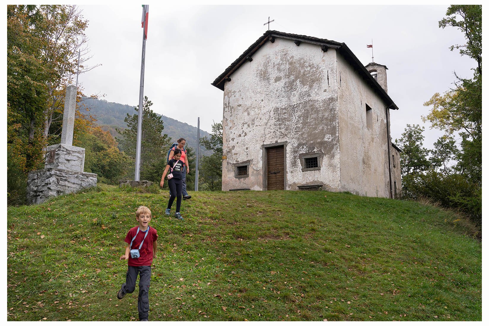 18 pranziamo davanti alla chiesetta di San Girolamo, tra Camaggiore e la sua alpe, esce anche un raggio di sole, ma poi se ne va....
