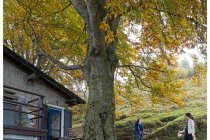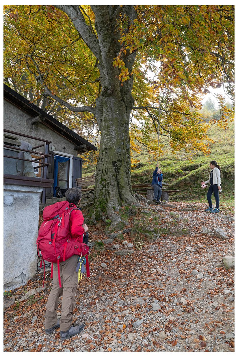 14 sotto due faggi giganteschi, l'alpe Camaggiore, qui compriamo del formaggio e un paio di salamini
