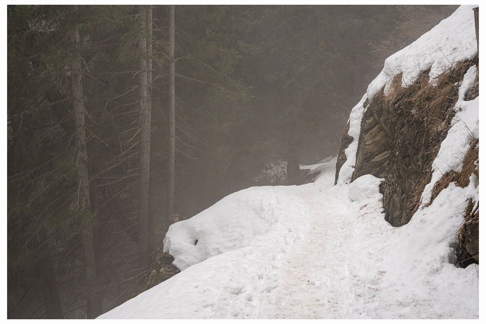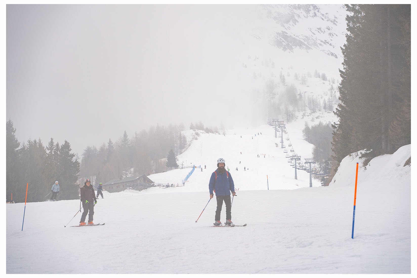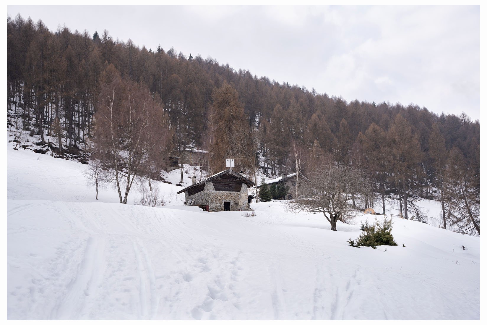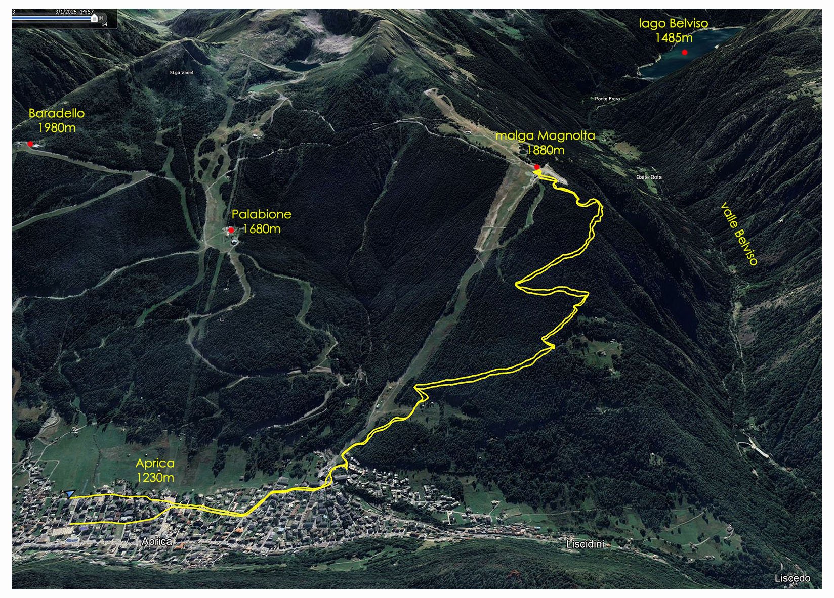 1 Giretto a piedi da Aprica verso l'arrivo della seggiovia Magnolta, un postaccio, ma Eli e Nives stanno sciando e da Aprica.... la scelta di itinerari è davvero scarsa. Per di più la giornata è grigia
