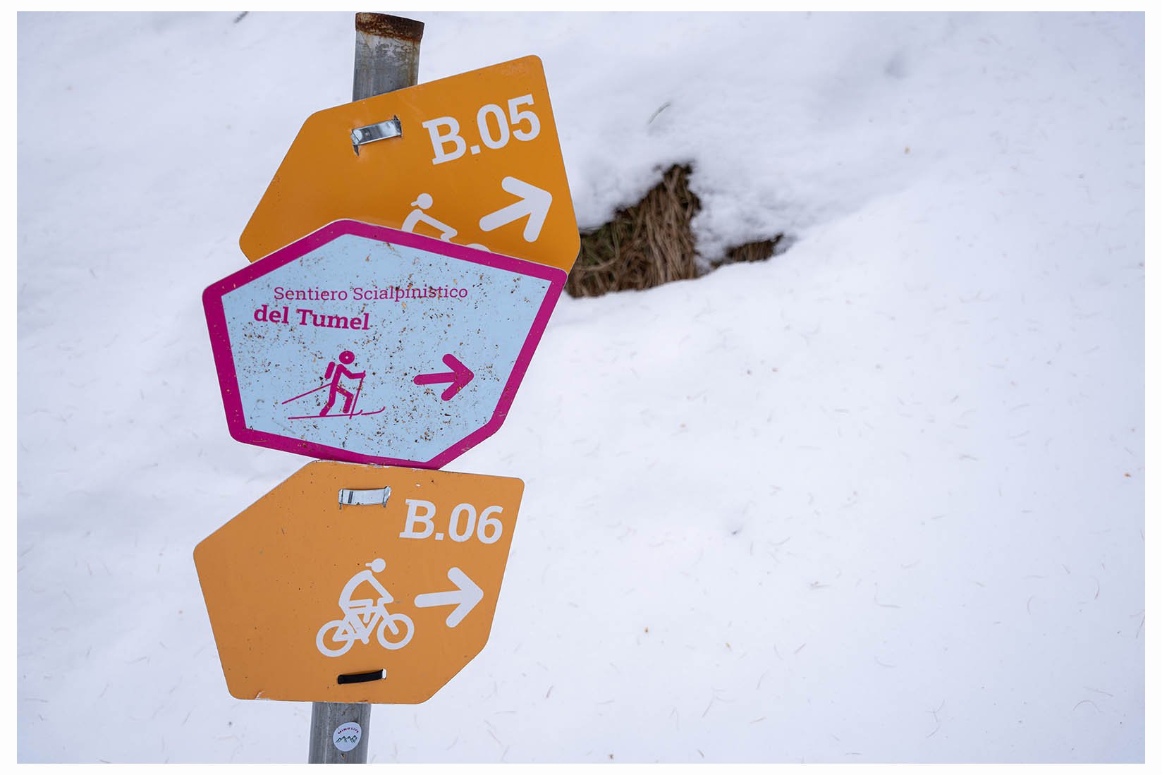 3 la salita attacca appena sotto l'inizio della cabinovia Magnolta, a destra guardando verso l'alto, non è indicata, chi sale a piedi con ciaspole o sci è un reietto in questi posti....