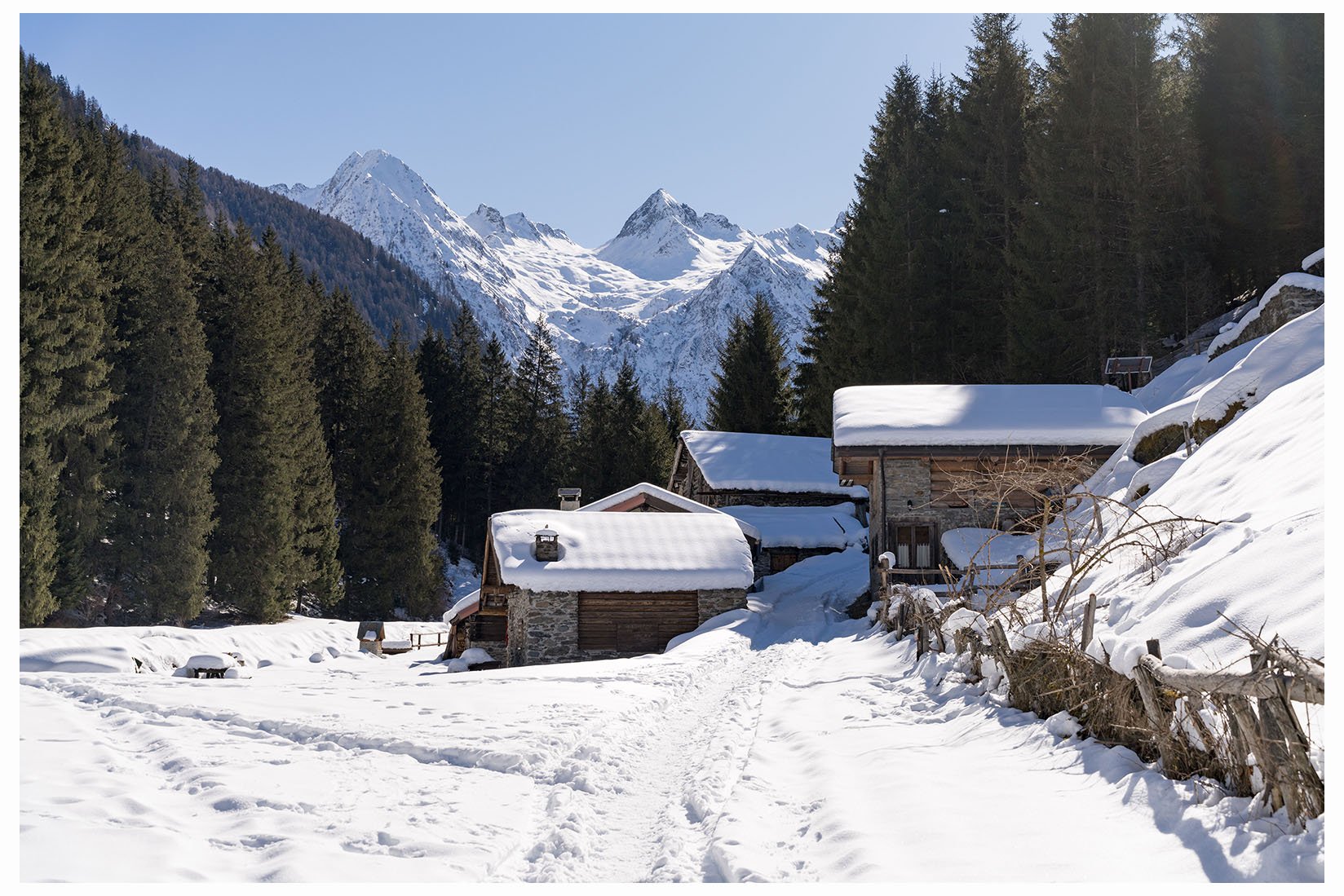 2 Ecco il piccolo borgo di Sant'Antonio, alla confluenza della val Brandet e dalla valle di Campovecchio. Io sono già stato qui la prima volta nel febbraio del 2022 insieme ad Eli, clicca QUI , poi ho fatto una passeggiata nella valle di Campovecchio da solo nel marzo del 2025, clicca QUI