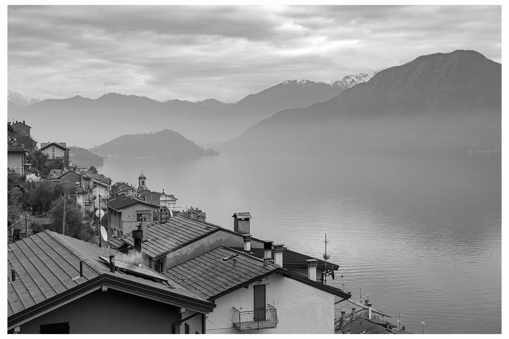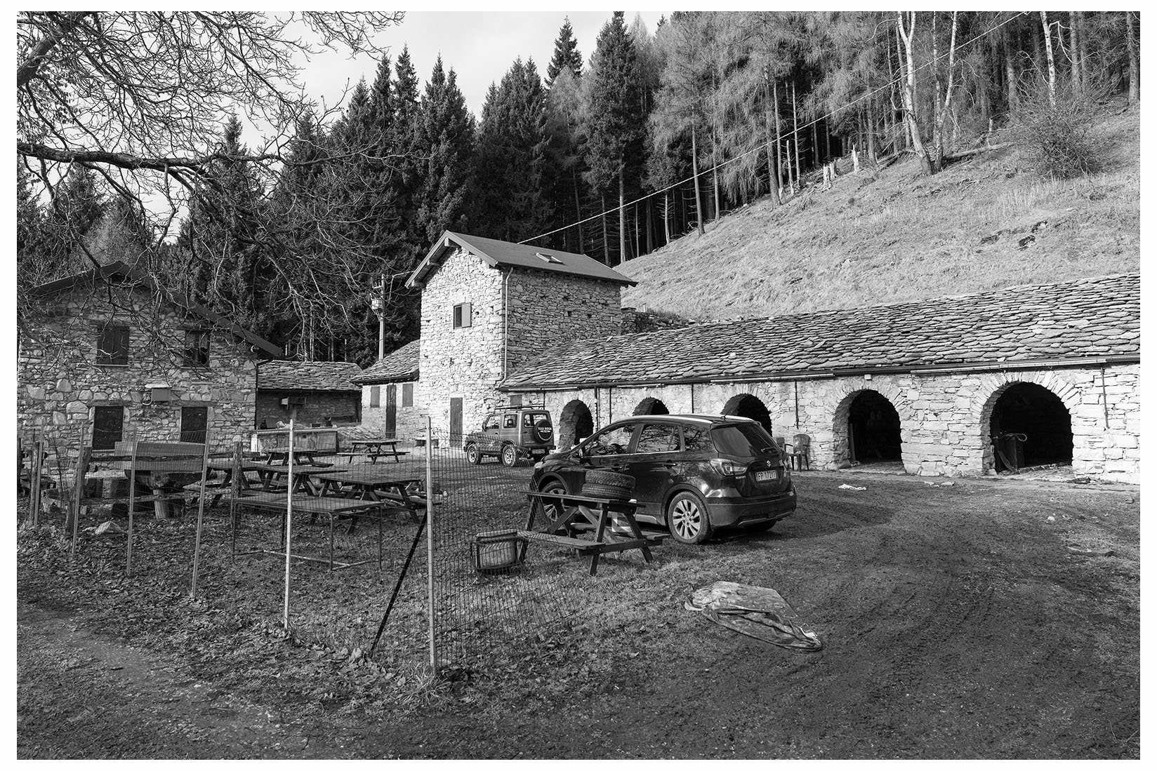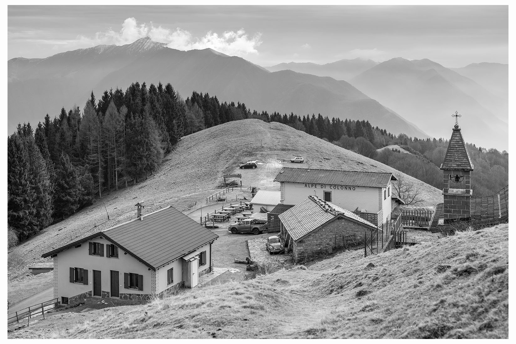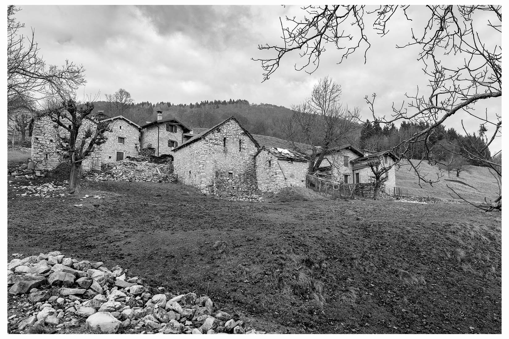 1 Ogni tanto lascio la bici in garage e metto gli scarponcini. La giornata è grigia e potrebbe anche arrivare un pochetto di pioggia, inutile andare troppo lontano, mi accontento di un giretto sui monti lariani appena oltre Argegno, con me vengono Bore e Marika. Visto che senza sole non ci sono colori per questo giretto ho fotografato in bianco e nero. Lasciamo la macchina a Colonno (dove inizia la Greenway ) e si parte subito in salita