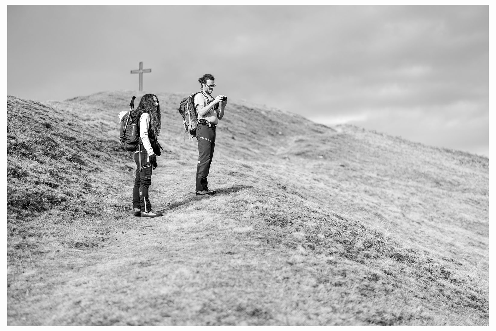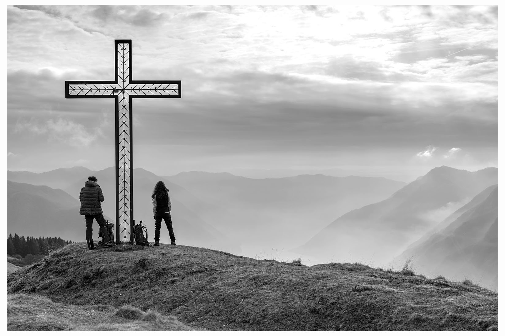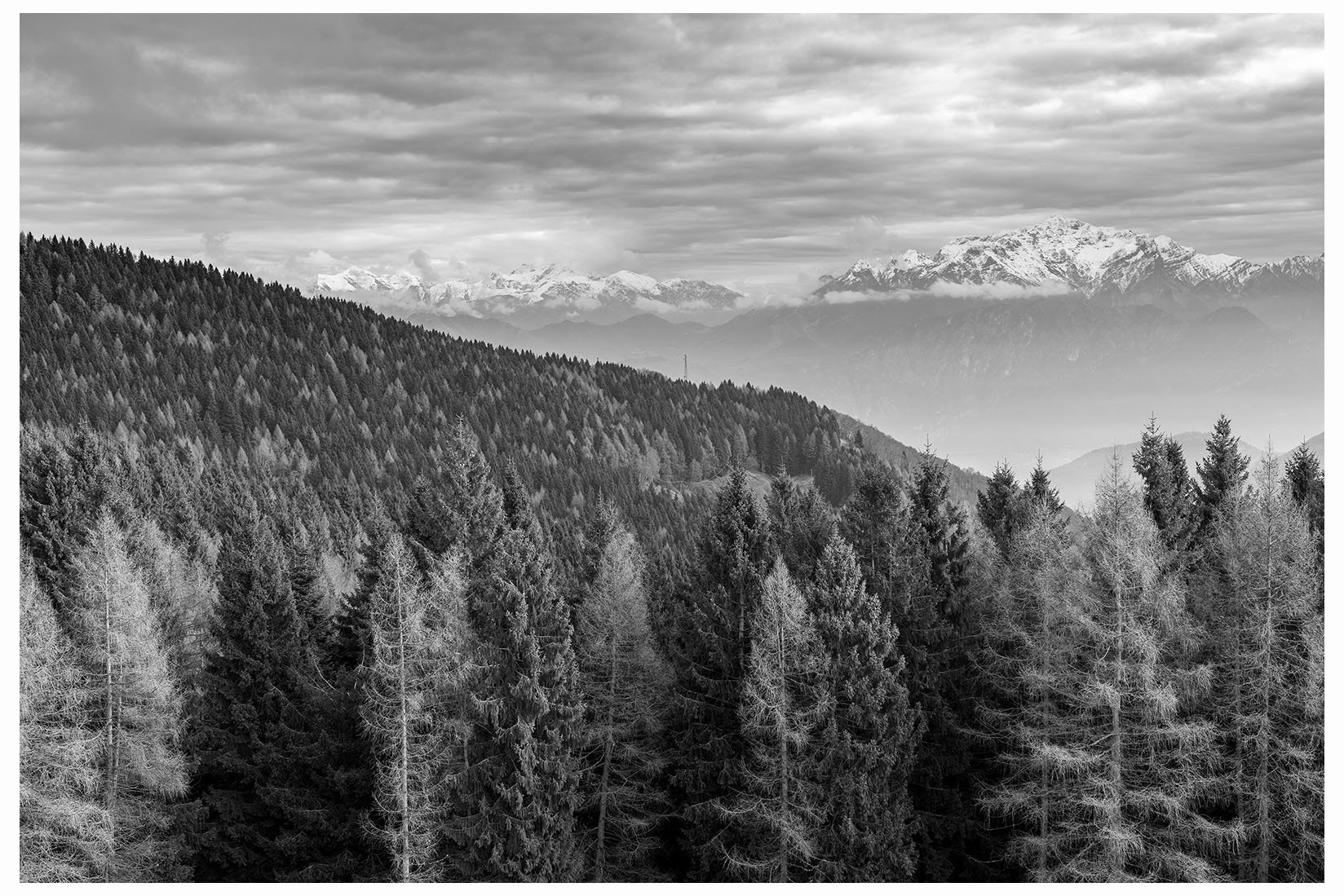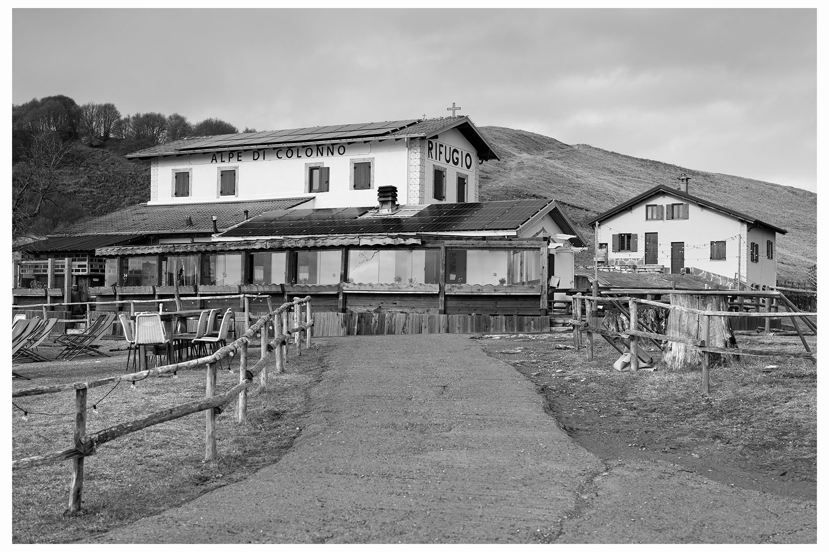 1 Ogni tanto lascio la bici in garage e metto gli scarponcini. La giornata è grigia e potrebbe anche arrivare un pochetto di pioggia, inutile andare troppo lontano, mi accontento di un giretto sui monti lariani appena oltre Argegno, con me vengono Bore e Marika. Visto che senza sole non ci sono colori per questo giretto ho fotografato in bianco e nero. Lasciamo la macchina a Colonno (dove inizia la Greenway ) e si parte subito in salita