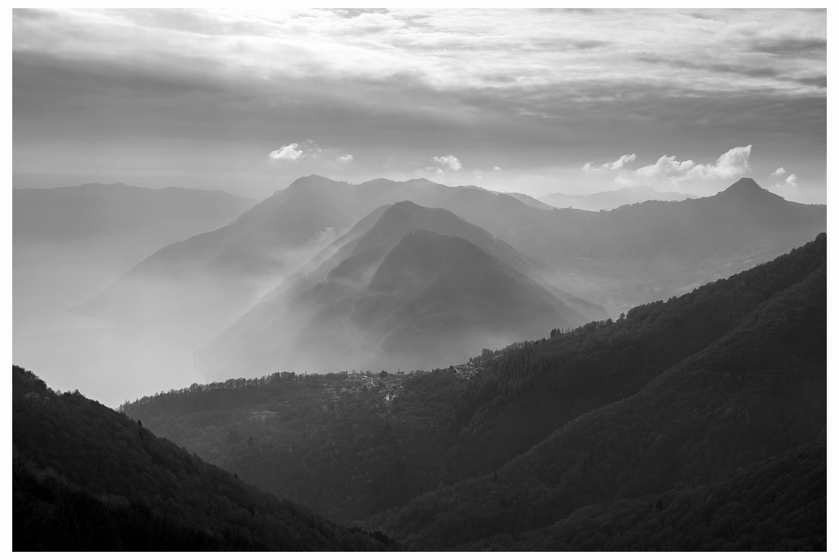 23 foschie svalicano le dorsali dei monti lariani più a sud, tra cui spicca a destra il Sasso Gordona