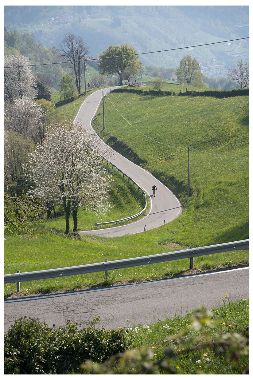 3 Roncola, qui termina la prima salita, piuttosto ripida direi, ci sono un mucchio di ciclisti stradali, deve essere una gran classica